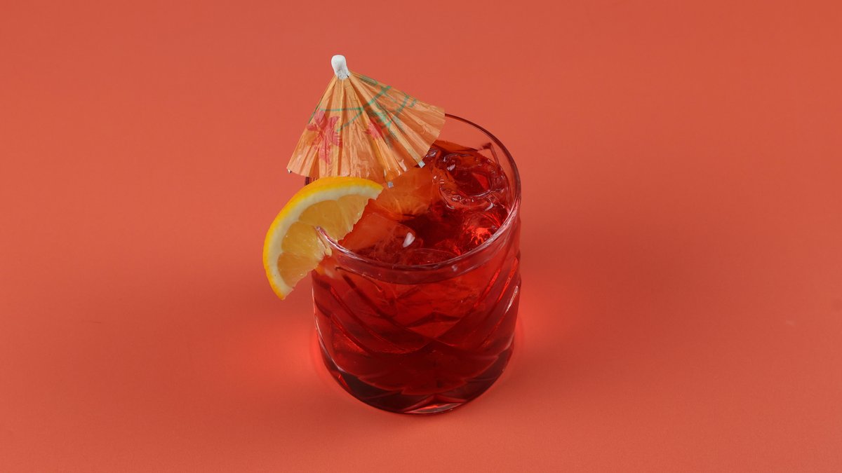 3 cl gin, 3 cl sweet red vermouth, 3 cl Campari, ice cubes, orange slice