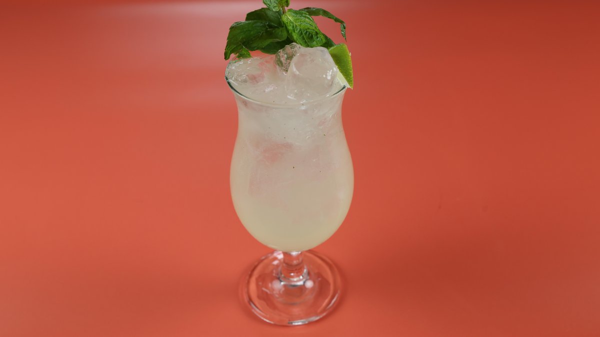 5 cl white rum, half a lime, 2 tablespoons cane sugar, fresh mint leaves, soda water, ice