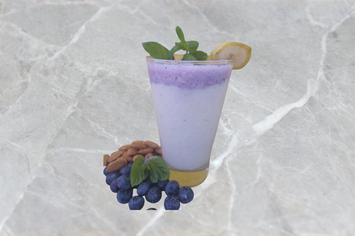 Contains fresh blueberries, banana, plain greek yoghourt, almond milk, honey & vanilla extract