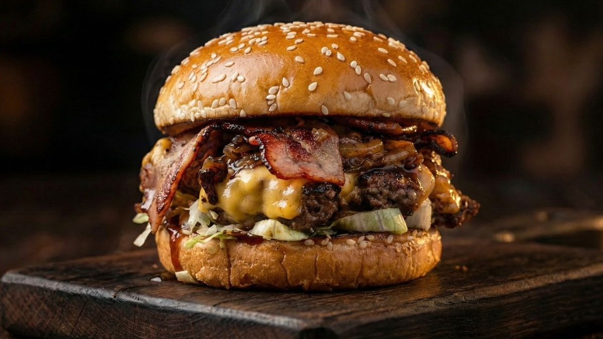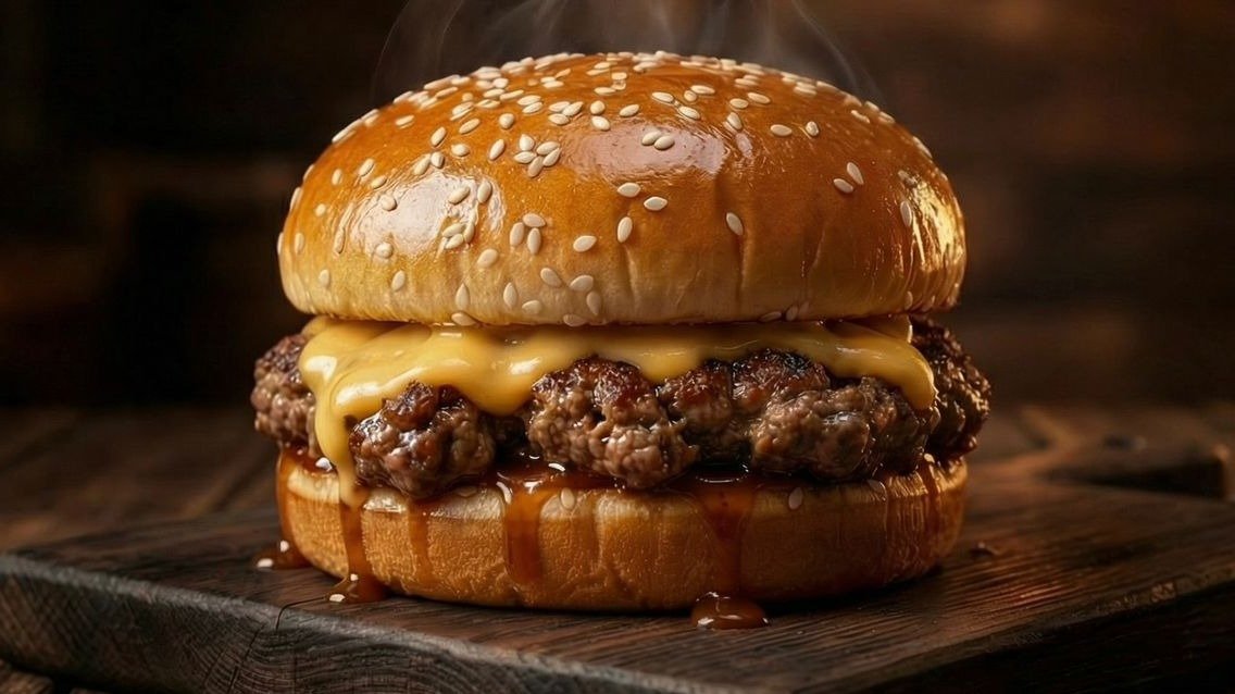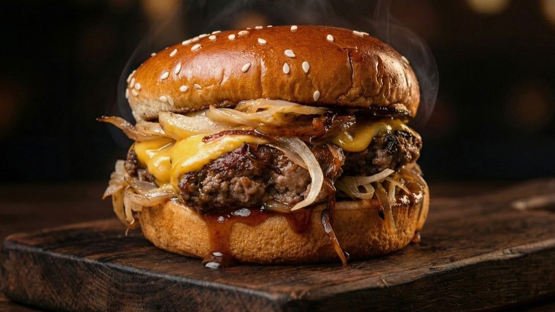Fresh smashed beef patties with crispy edges and juicy flavor.