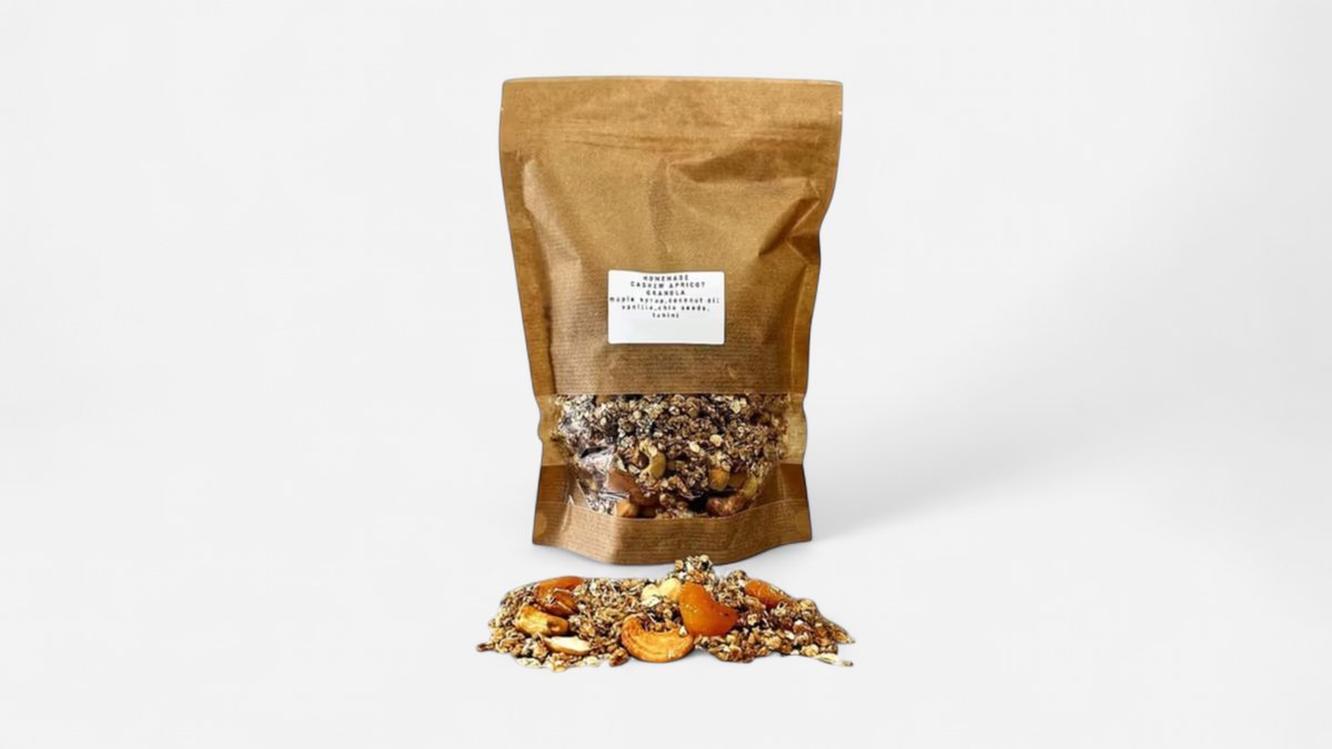 400 gr homemade granola Oat, Cashew, Apricot, Tahini, Maple syrup, Coconut oil, Chia seeds, Vanilla