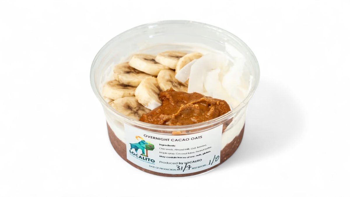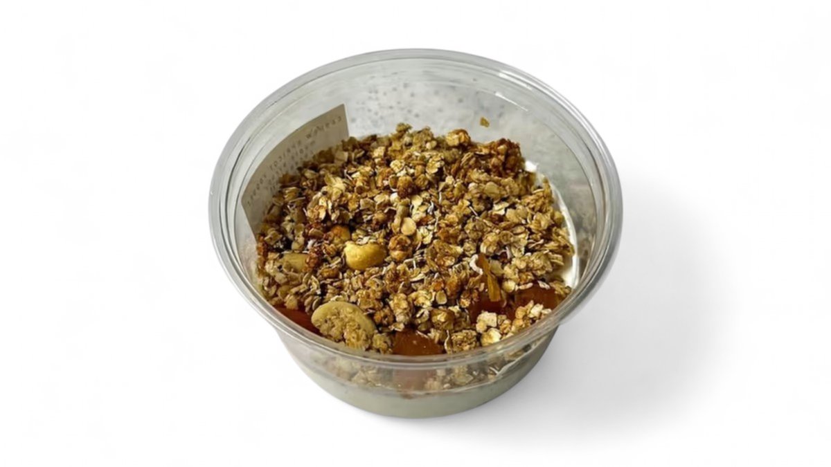 Delicious healthy yogurt 2% fat made with granola, banana, handmade peanut butter spread, maple syrup. May contain traces of soy, nuts, gluten.