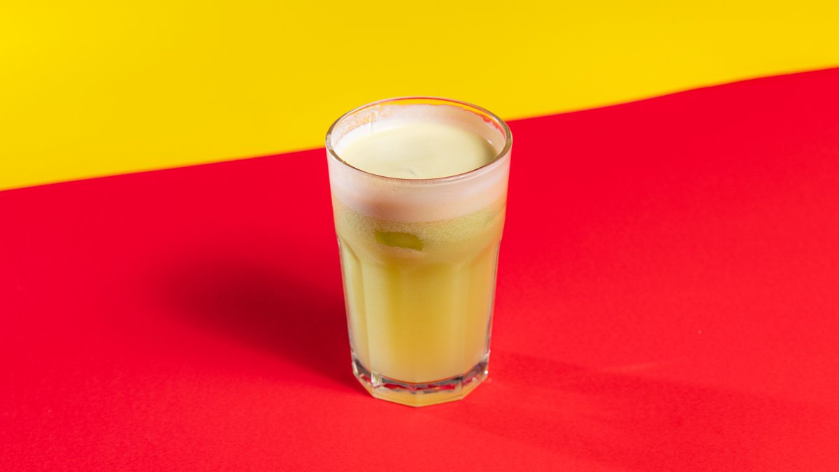 With vanilla ice cream, hot white chocolate, espresso and foam
