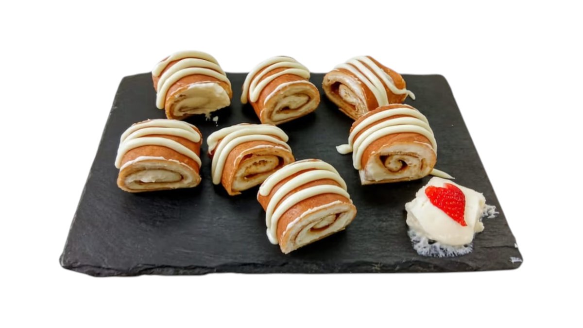 Profiteroles filled with cream and topped with Hazelnut Pralina