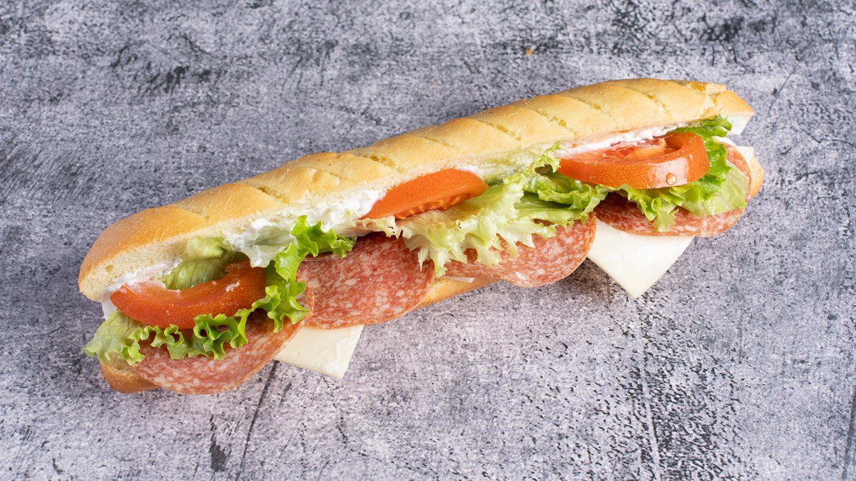 Με σαλάμι αέρος, gouda, μαρούλι, ντομάτα και μαγιονέζα
