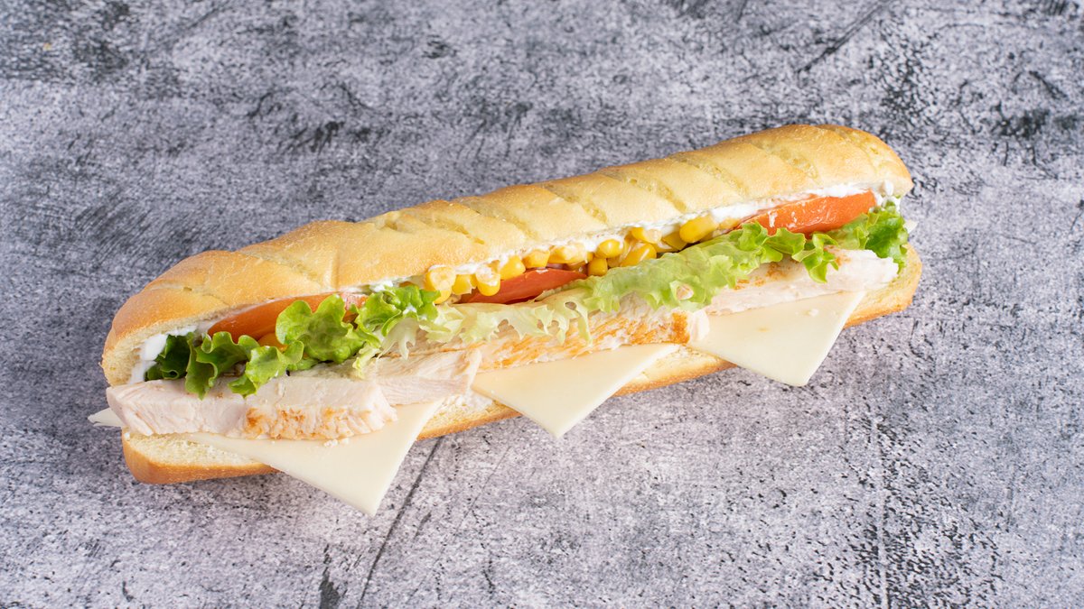 Με κοτόπουλο, gouda, μαρούλι, ντομάτα, καλαμπόκι και μαγιονέζα