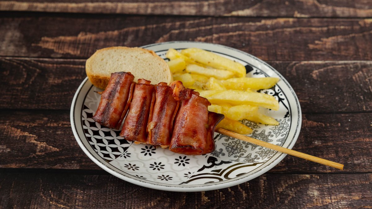 Μπέικον, διπλό σουτζούκι, καυτερή πιπεριά και γραβιέρα Νάξου