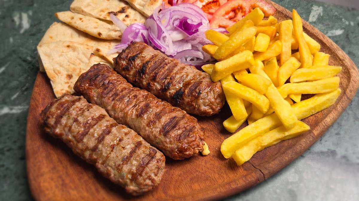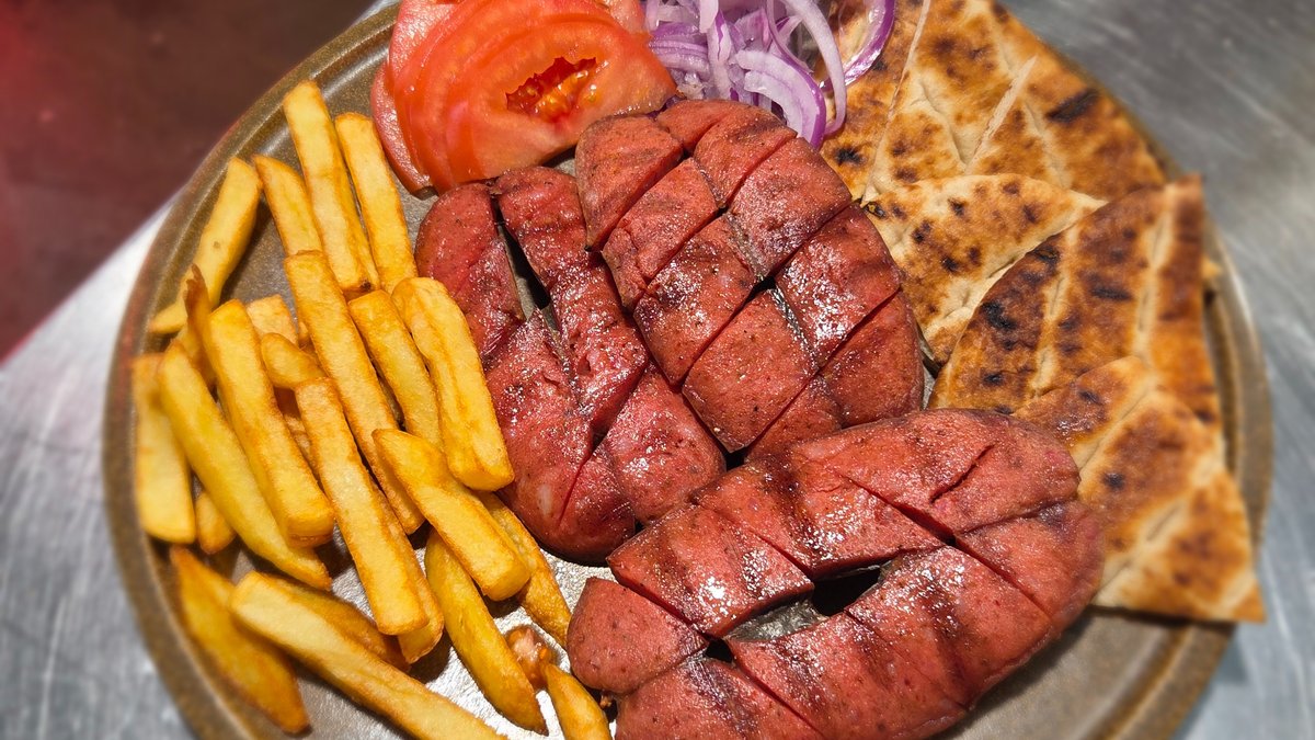 Μπέικον, διπλό σουτζούκι, καυτερή πιπεριά και γραβιέρα Νάξου