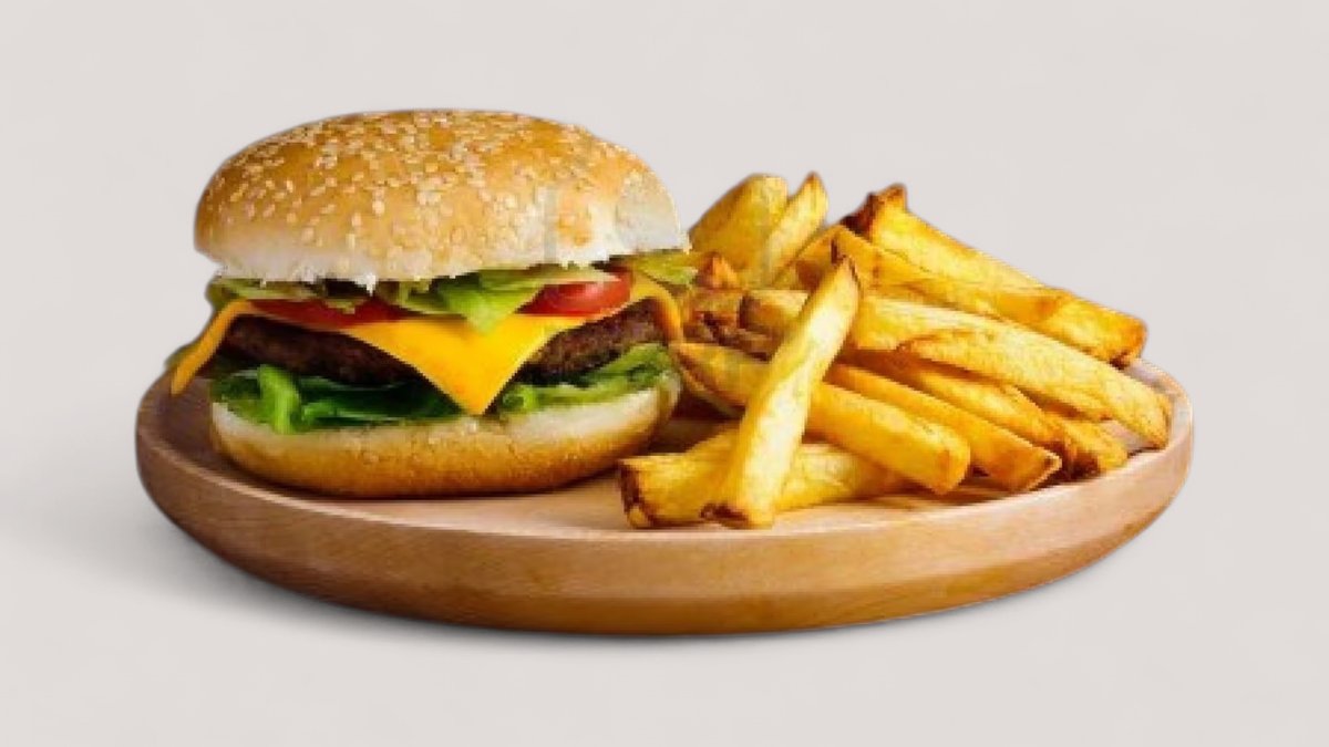 120g. Συνοδεύεται από πατάτες τηγανητές και ψωμί