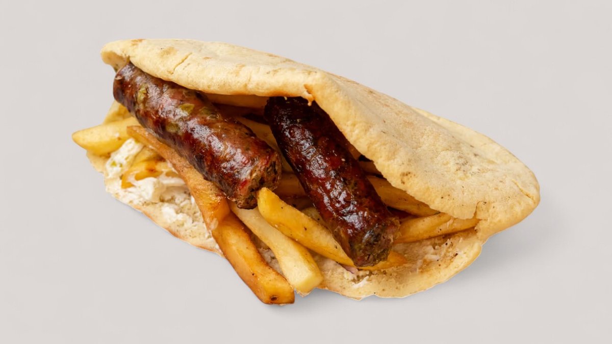 Συνοδεύεται από πατάτες τηγανητές, πίτες, σως μουστάρδας και τζατζίκι