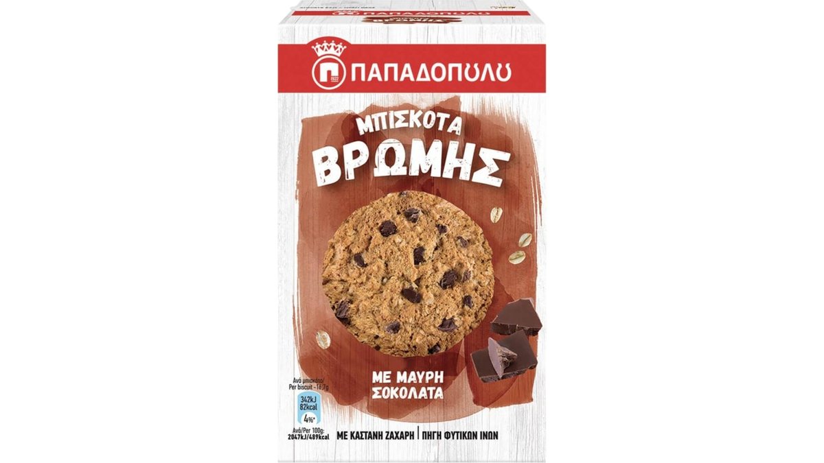 Μπισκότα Βρώμης Χωρίς Προσθήκη Ζάχαρης Με Μαύρη Σοκολάτα 155 g