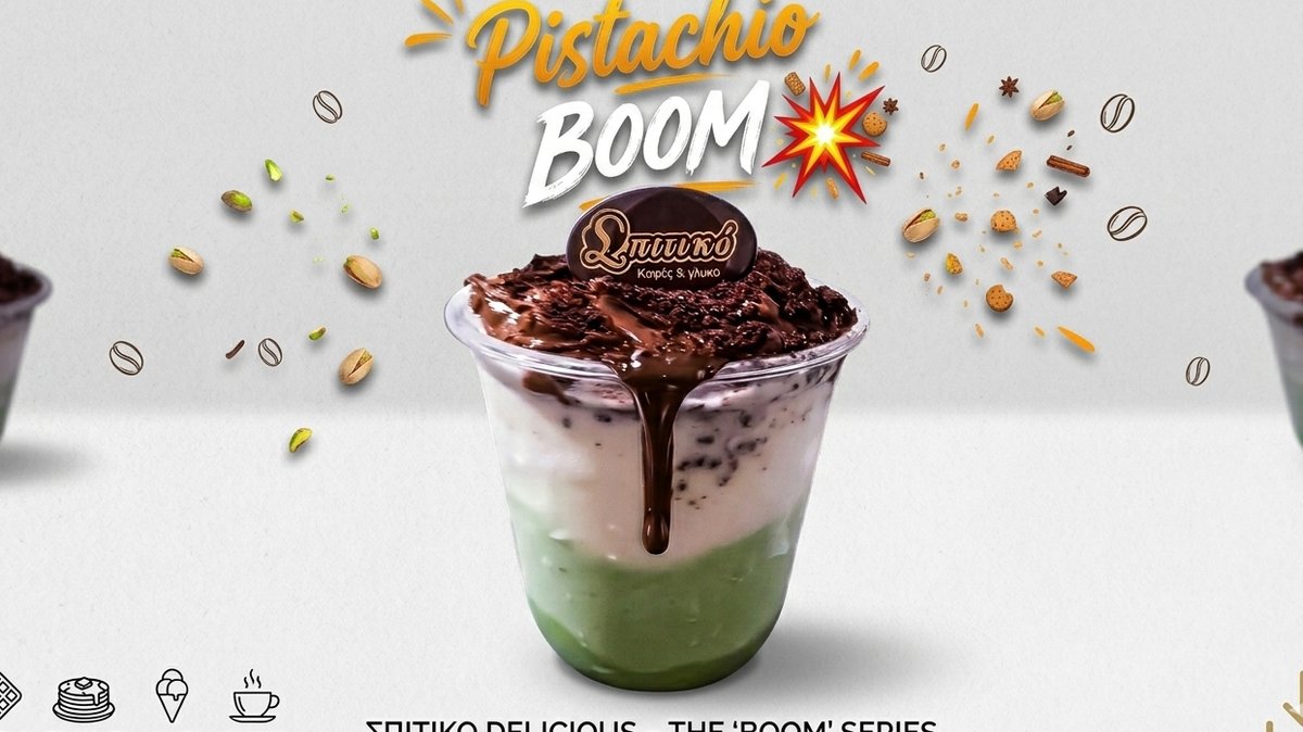 Παγωτό φυστίκι & στρατσιατέλα με πραλίνα και premium υφή.