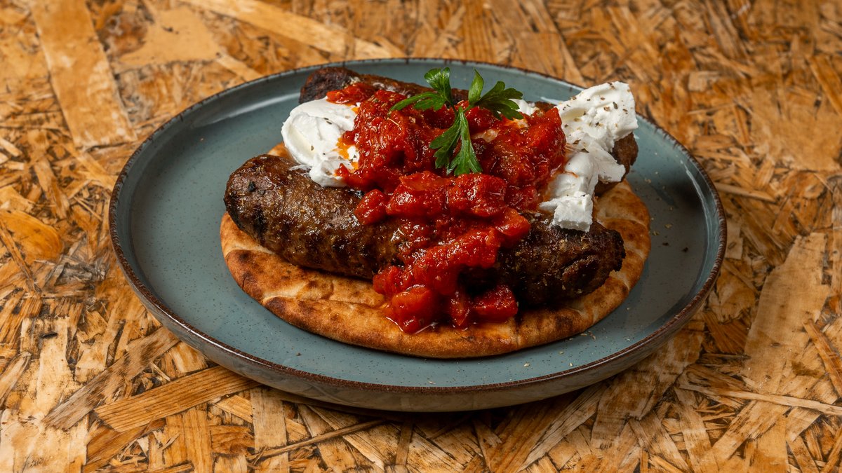 Χοιρινά καλαμάκια, στήθη κοτόπουλο, λουκάνικο, μπιφτέκια, πατάτες, πίτα, BBQ sauce
