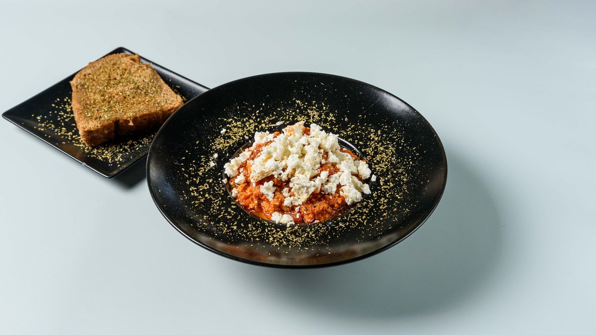 Με φέτα και ρίγανη. Συνοδεύεται από ψωμί φρυγανισμένο