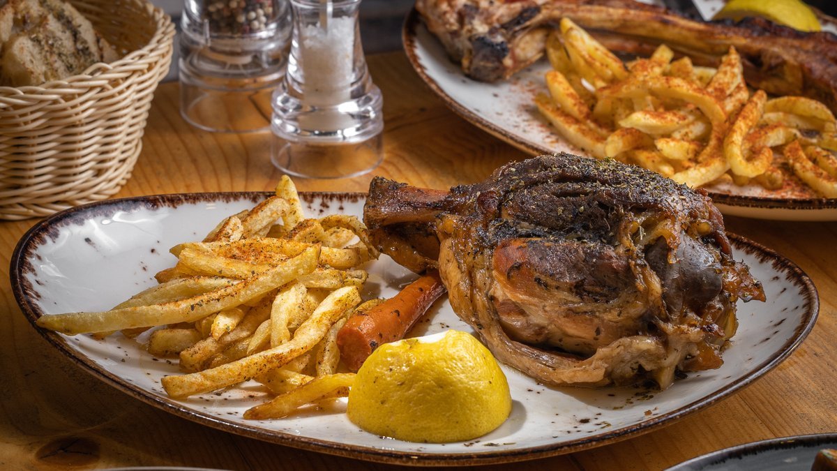 Με σάλτσα μπύρας. Συνοδεύεται από πατάτες τηγανητές