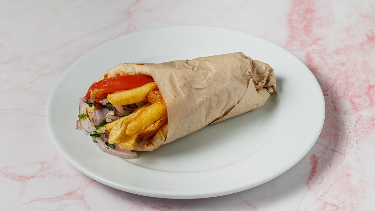 300g. Χειροποίητος. Συνοδεύεται από ντομάτα, κρεμμύδι, πατάτες τηγανητές, τζατζίκι και 1 πίτα