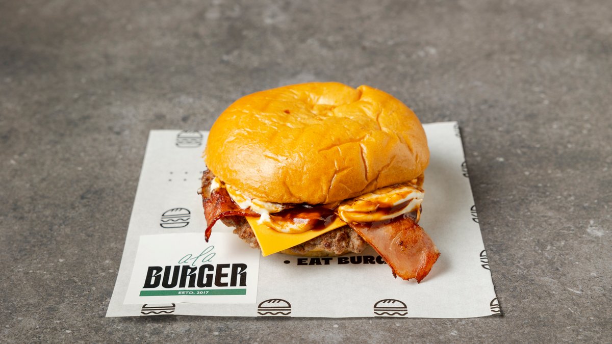 Με μπιφτέκι από 100% μοσχαρίσιο κιμά (240g), cheddar, τηγανητό αυγό και BBQ sauce