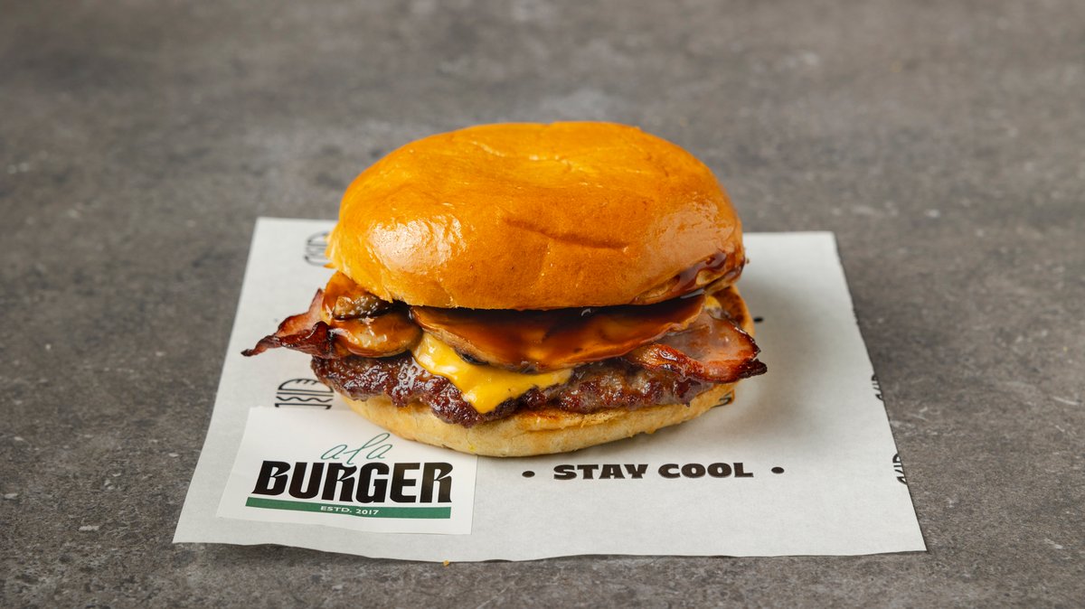 Με μπιφτέκι από 100% μοσχαρίσιο κιμά (240g), καραμελωμένα κρεμμύδια, μπέικον, κατσικίσιο τυρί και μαγιονέζα τρούφας.