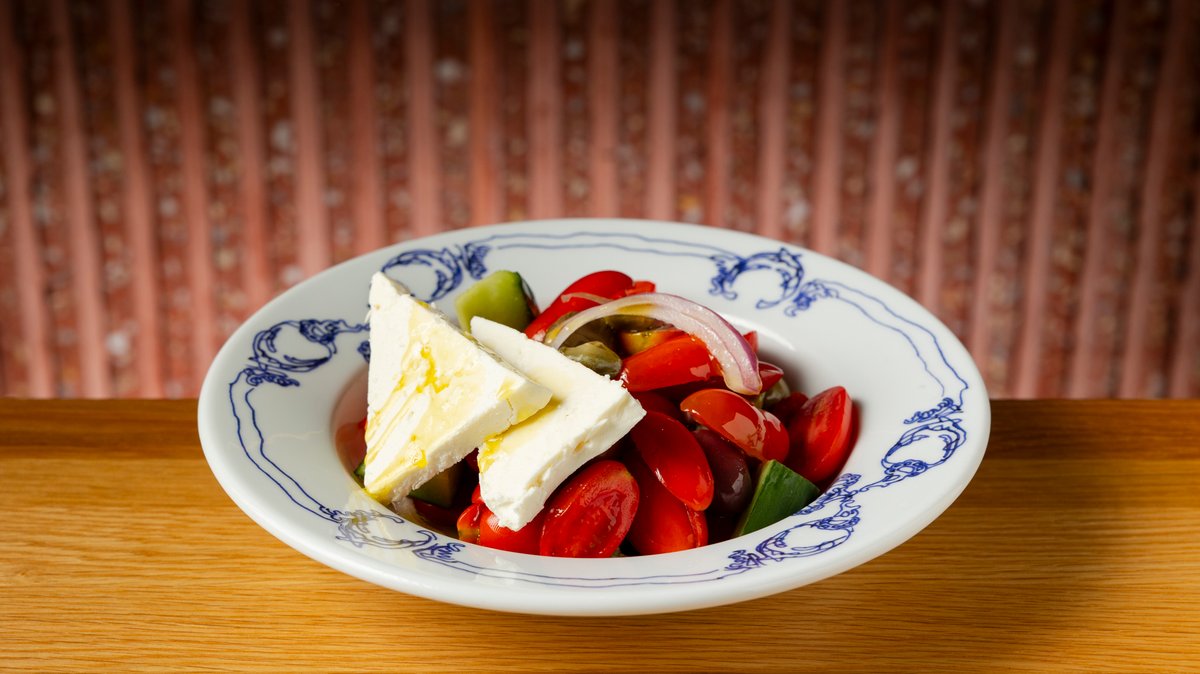 Τομάτα, αγγούρι, κρεμμύδι, κάππαρη, ελιές και φέτα Καλαβρύτων