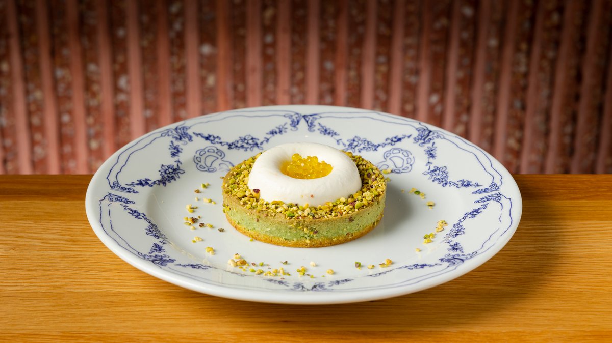 Τάρτα με φυστίκι, mousse μανούρι και μέλι θυμαρίσιο