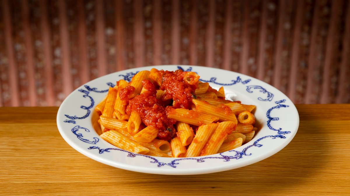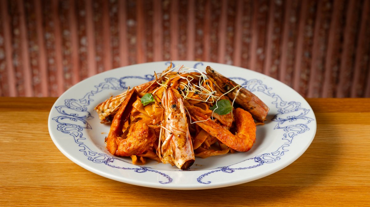 Ταλιατέλες χειροποίητες με γαρίδες, θυμάρι, ντοματίνια confit και βασιλικό