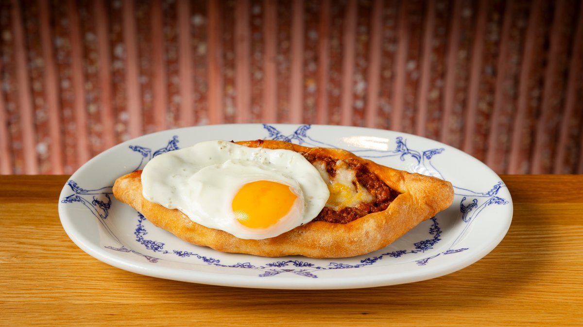 Πεϊνιρλί με κιμά μοσχαρίσιο, γραβιέρα και αυγό τηγανητό