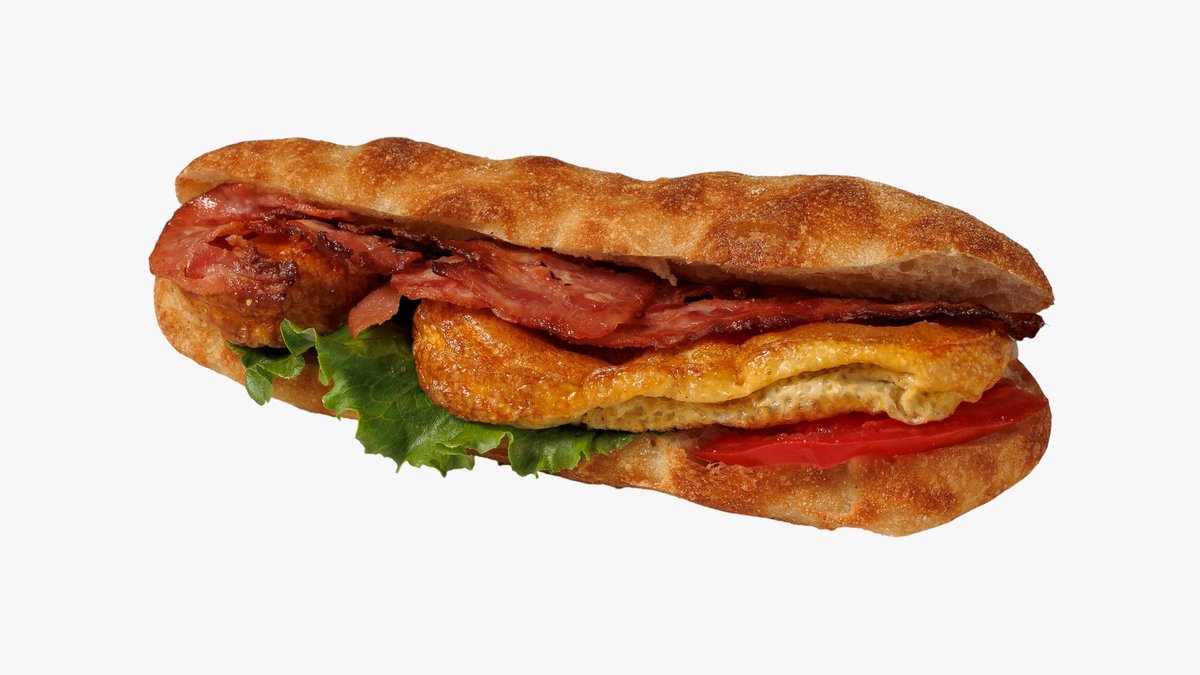 Με ομελέτα, μπέικον, provolone, μαγιονέζα, ντομάτα και λόλα