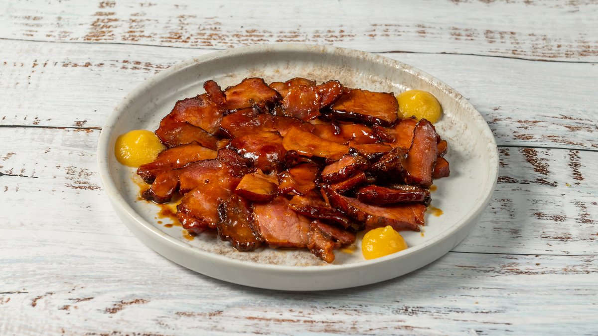 Καπνιστό χοιρινό καραμελωμένο με πορτοκάλι και μέλι