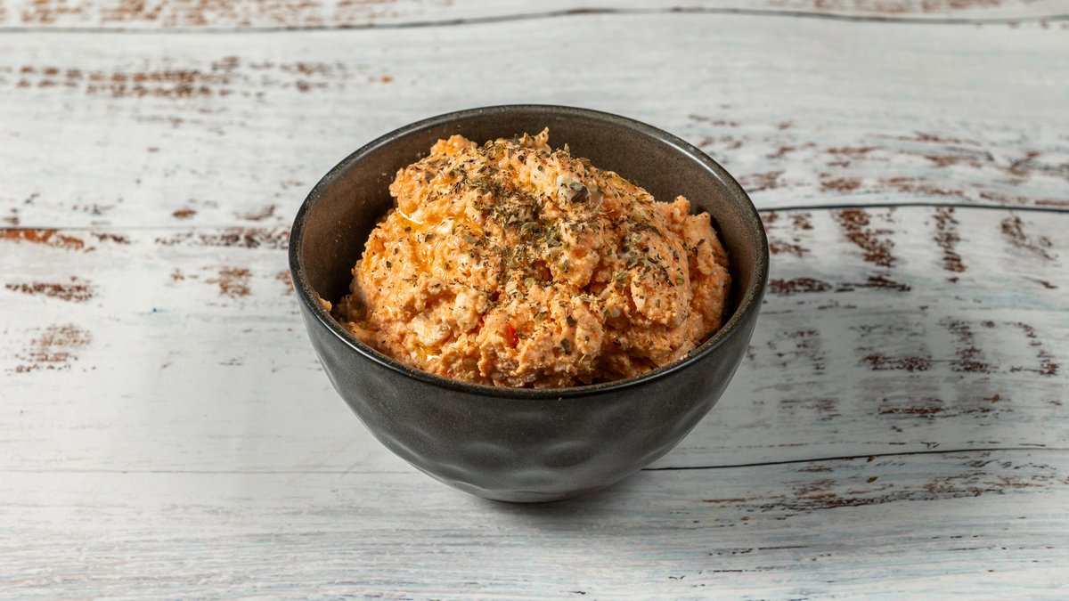Με γαλομυζήθρα Κρήτης, φέτα, καπνιστή πιπεριά Φλωρίνης και φρέσκο ελαιόλαδο.
