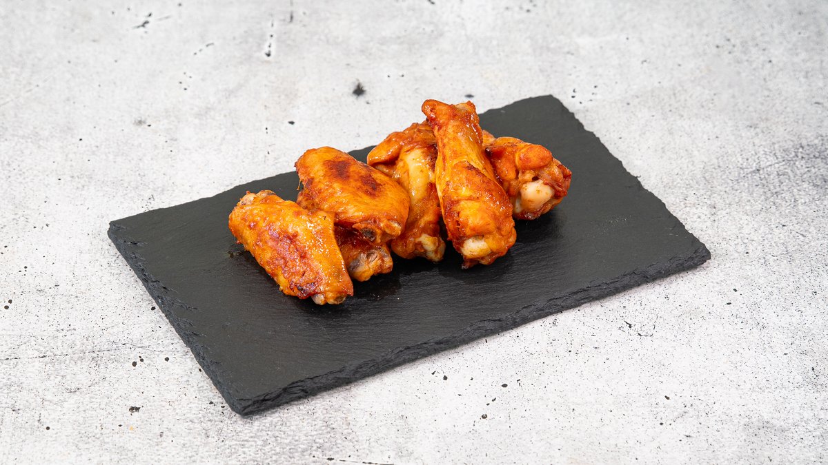6 Τεμάχια. Με κοτόπουλο, μαγειρικό λάδι και σκόνη κρεμμυδιού. Επίλεξε πόσο πικάντικο το θες.