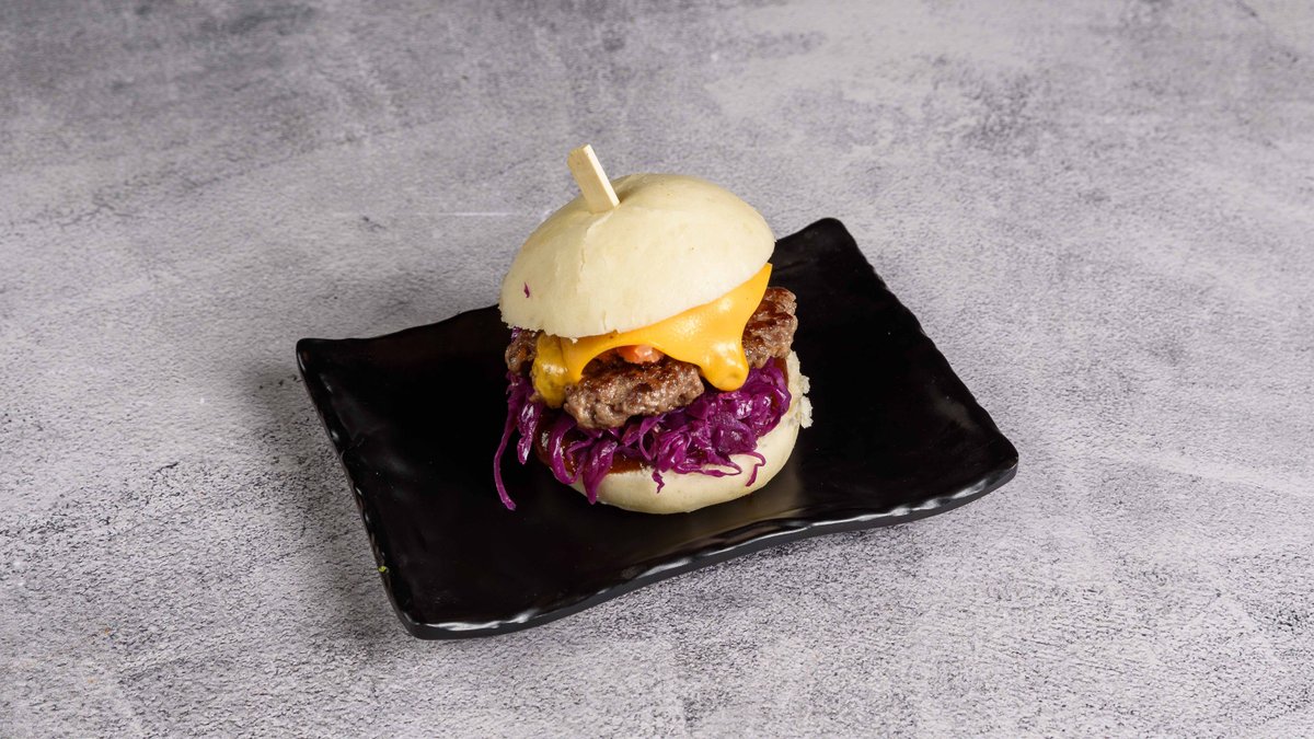 Με smashed μπιφτέκι απο 100 % μοσχαρίσιο κιμα, hoisin Ketchup, πίκλα κόκκινο λάχανο αρωματισμένη με σησαμέλαιο, chutney bacon και Cheddar