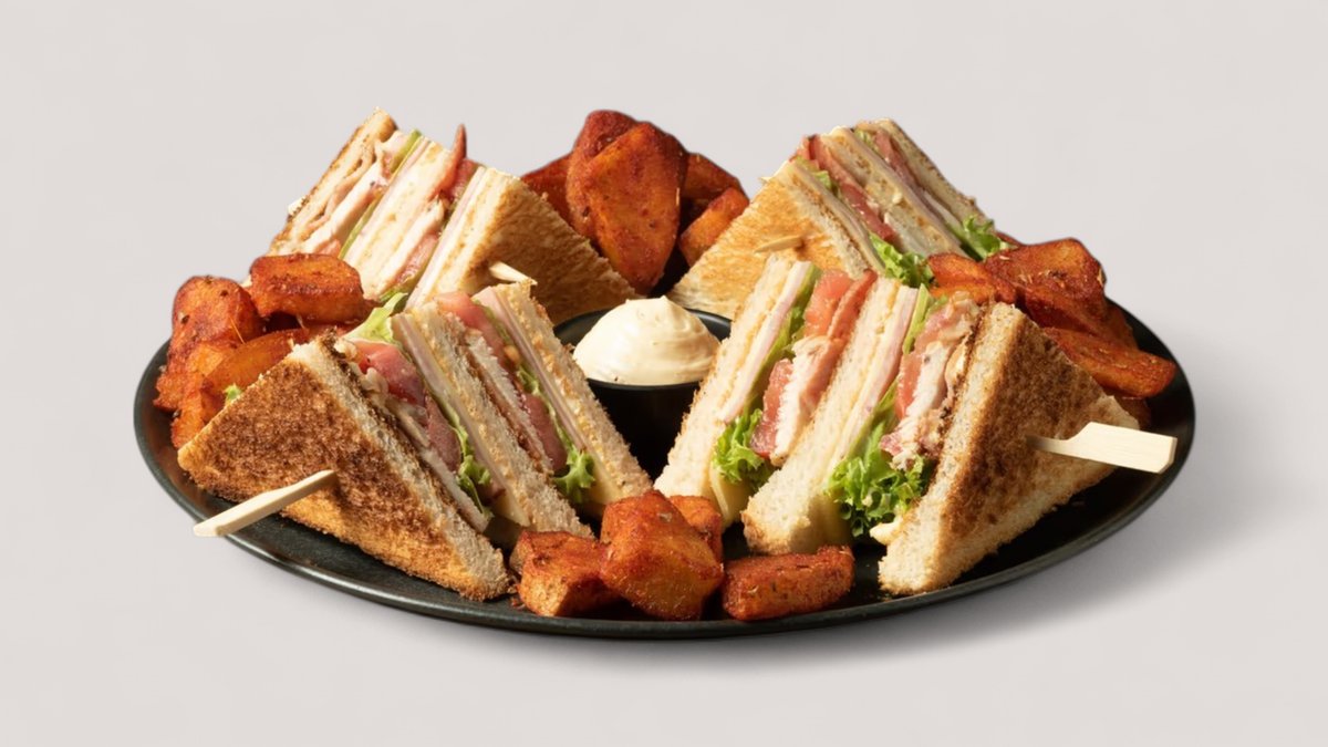 Με gouda, κοτόπουλο, γαλοπούλα, ντομάτα, iceberg και μαγιονέζα. Συνοδεύεται από πατάτες country.
