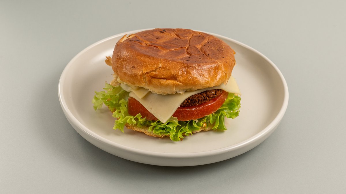 Με μπιφτέκι μοσχαρίσιο, μαρούλι, μπέικον, ντομάτα, τυρί και σως