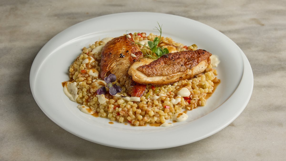 Με δίχρωμη κινόα, παρμεζάνα και σως πορτοκαλιού