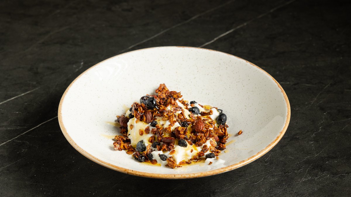 Mε γιαούρτι, ganola χειροποίητη, κανέλα, μήλο πράσινο και maple syrup