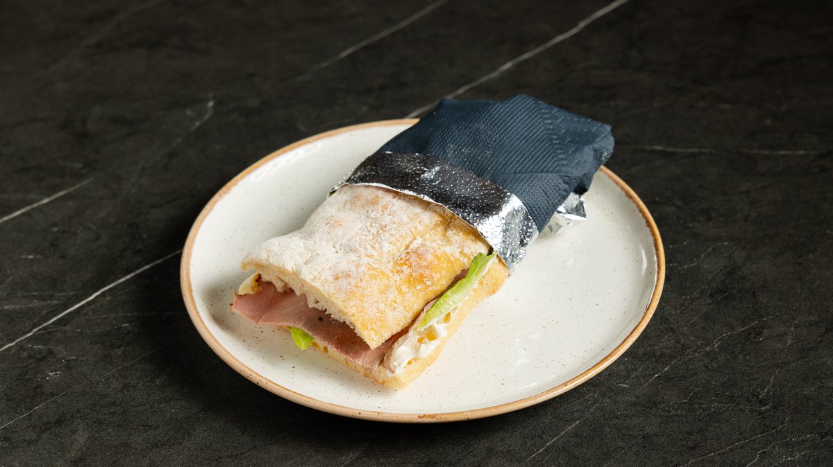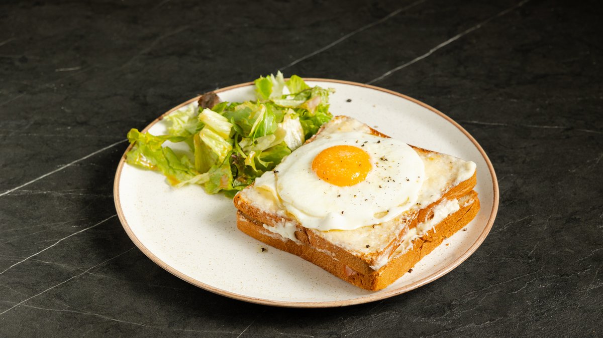 Sando με emmental, προσούτο, τηγανητό αυγό και μπεσαμέλ