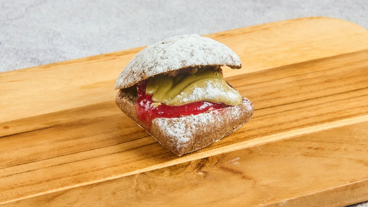 Ψωμί Pinseta, φιλέτο κοτόπουλο, τυρί gouda, κρέμα αβοκάντο, lola πράσινη, ντομάτα.