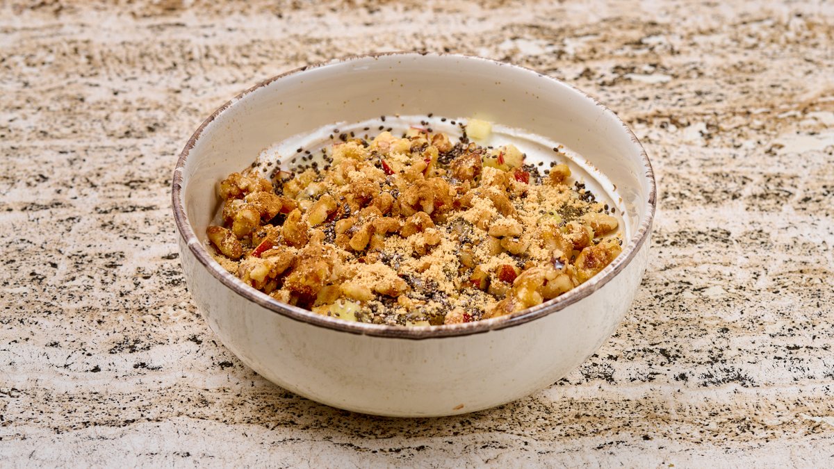 Με γιαούρτι, μήλο, μπισκότο κανέλας, μέλι, παπαρουνόσπορος και καραμελωμένο καρύδι