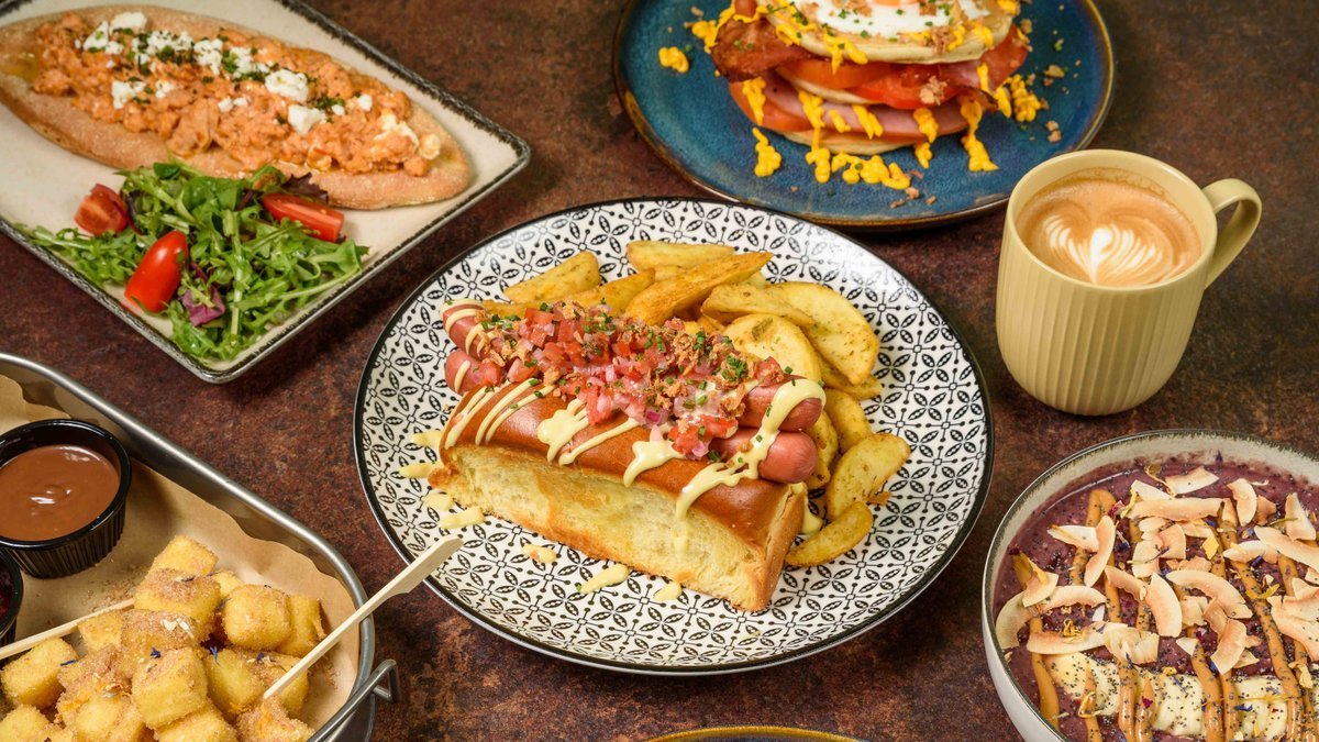Σε ψωμί προζυμένιο, λουκάνικο μοσχαρίσιο, κρεμμύδι & ντομάτα. Συνοδεύεται από πράσινη σαλάτα