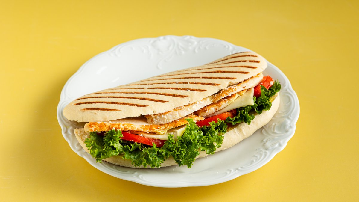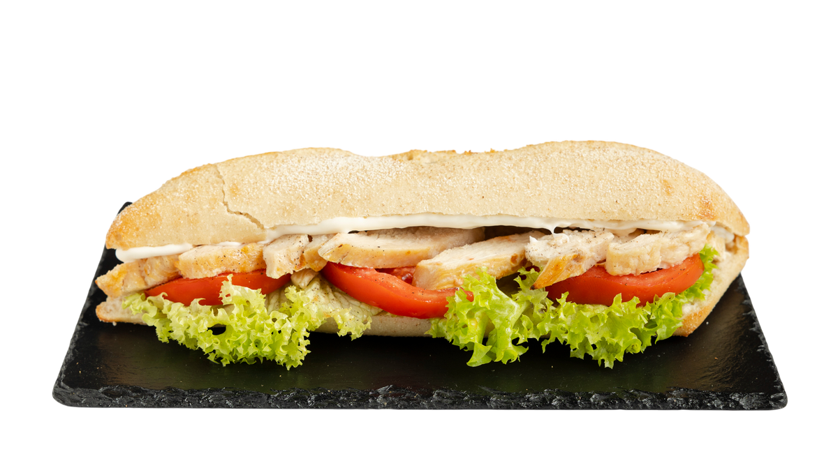 Με κοτόπουλο, edam, ντομάτα , σως μουστάρδας