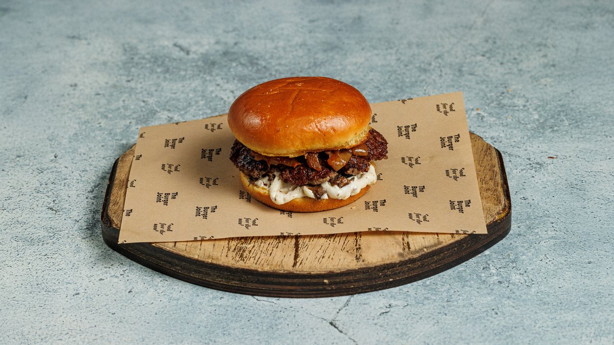 Ψωμί brioche με διπλό smash black angus beef, διπλό emmental, crispy onion, spicy μαρμελάδα φράουλας και smash mayo. Συνοδεύεται από chips πατάτας