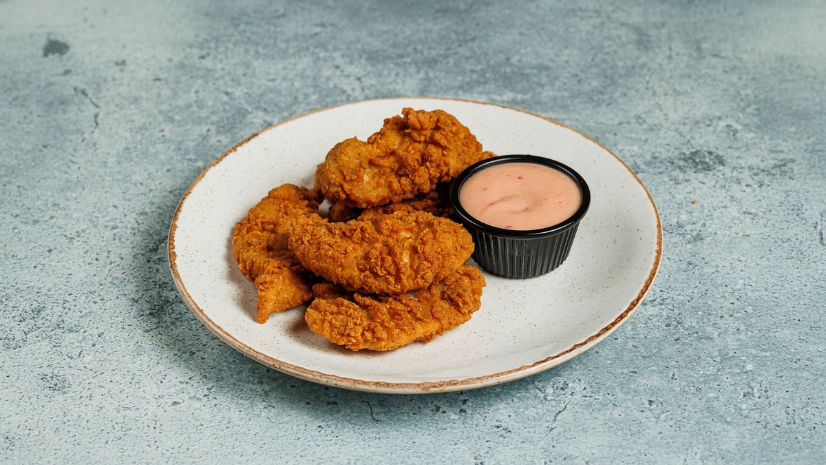 8 κοτομπουκιές. Συνοδεύεται από πατάτες τηγανητές