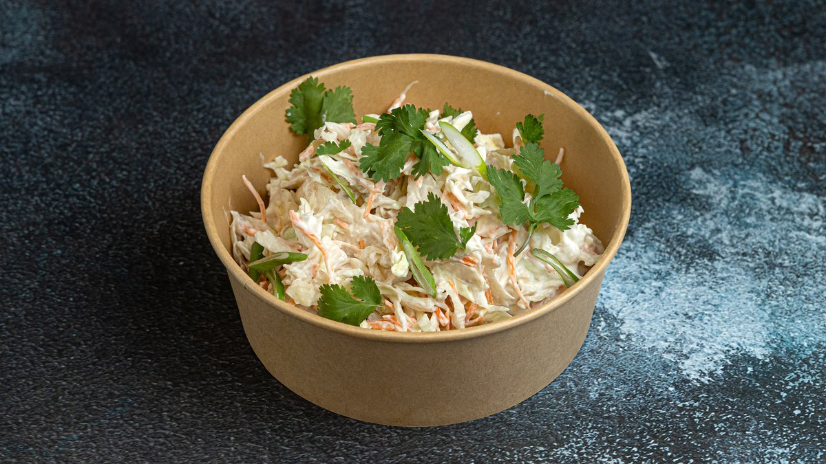 Λαχανοκαρότο με dressing μαγιονέζας.