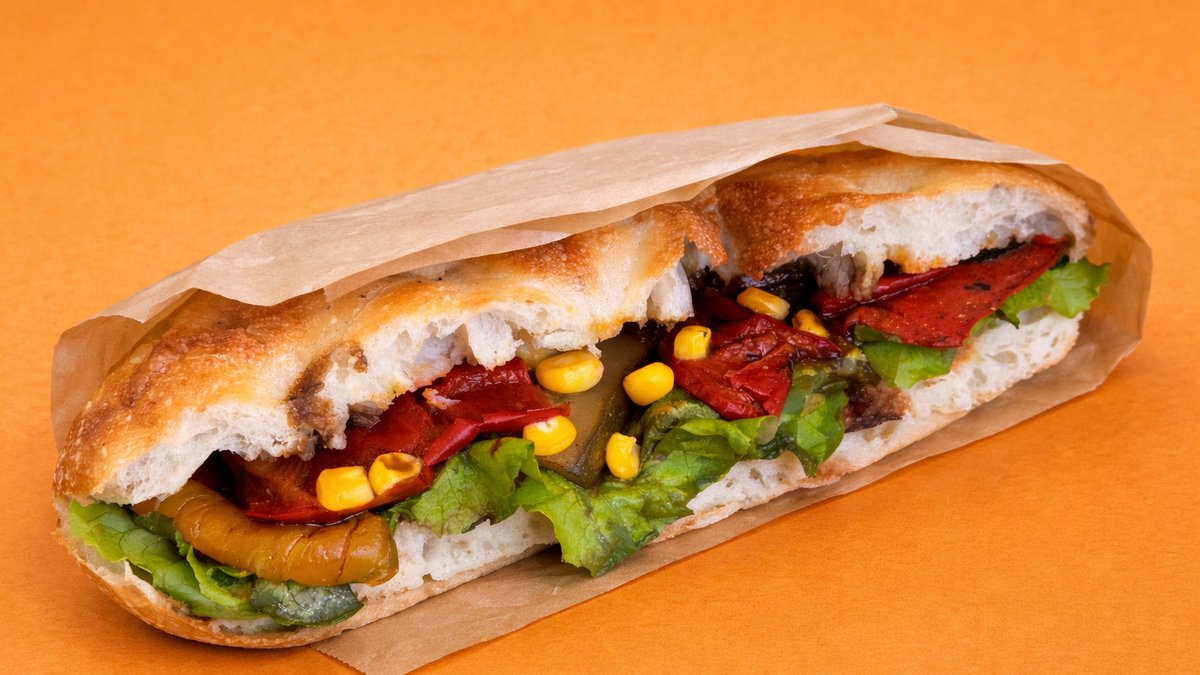 Focaccia με νηστίσιμη μαγιονέζα, κοτομπουκιές απο ρεβίθια, παρμεζάνα σόγιας, ντομάτα και λόλα