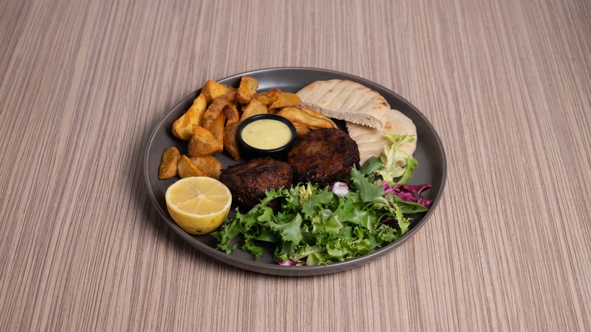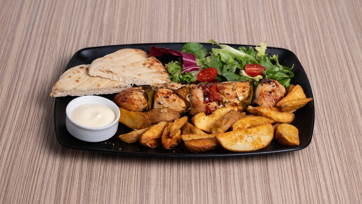 3-4 Ατόμων. Με 1 μπιφτέκι μοσχαρίσιο, 1 μπιφτέκι κοτόπουλο, μπιφτέκι γαλοπούλας, κοντοσο΄υβλι χοιρινό, κοντοσούβλι φιλέτο κοτόπουλο. Συνιδεύεται από πατάτες τηγανητές, πίτες κομμένες και sauce γιαουρτιού