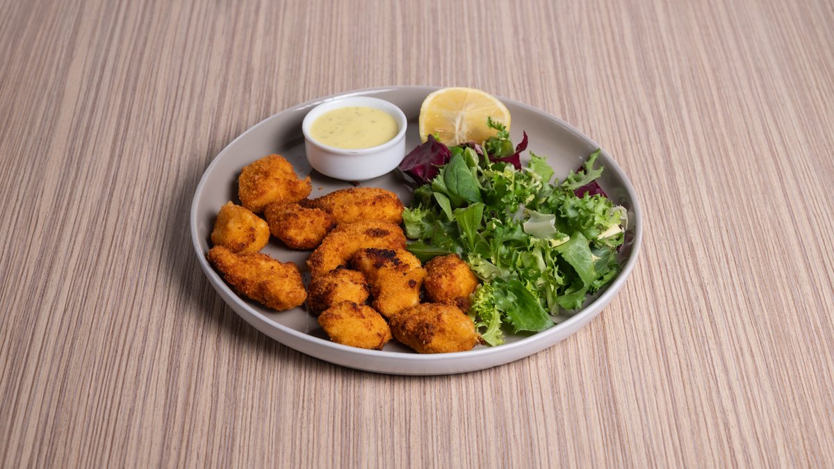 Συνοδεύεται από πατάτες τηγανητές, σαλάτα εποχής και σως