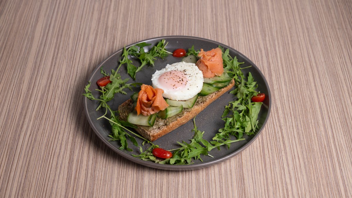 Ψωμί πολύσπορο φρυγανισμένο με τυρί κρέμα, τόνο, αγγούρι, πιπεριά πράσινη και ντομάτα. Συνοδεύεται από πατάτες τηγανητές και dip sauce μαγιονέζας