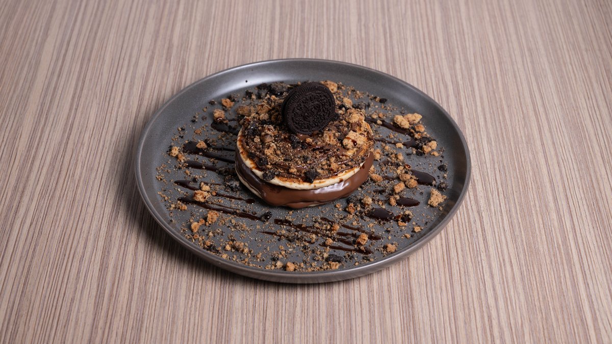 Με πραλίνα σοκολάτα, τριμμένο μπισκότο και μπισκότο oreo