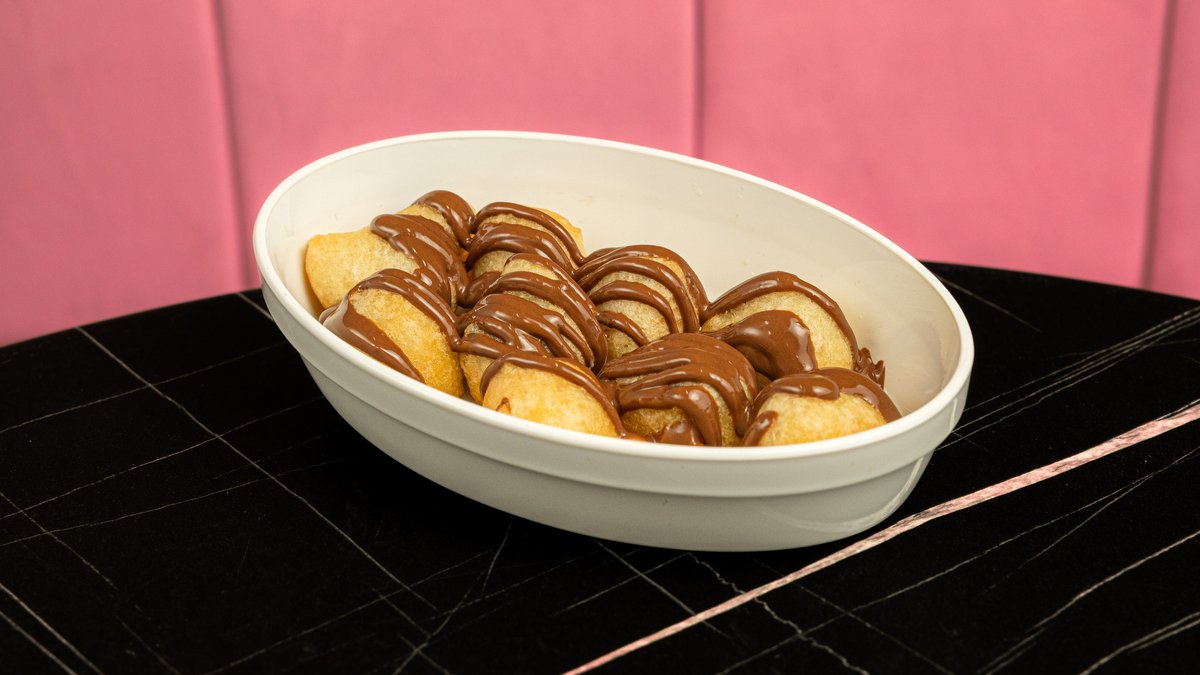 1+1 Λουκουμάδες με Πραλίνα Σοκολάτα και Μπισκότο Τριμμένο