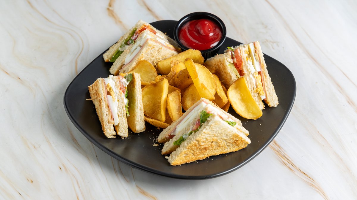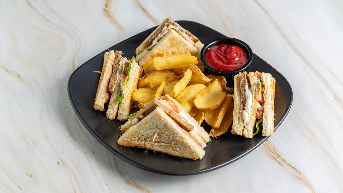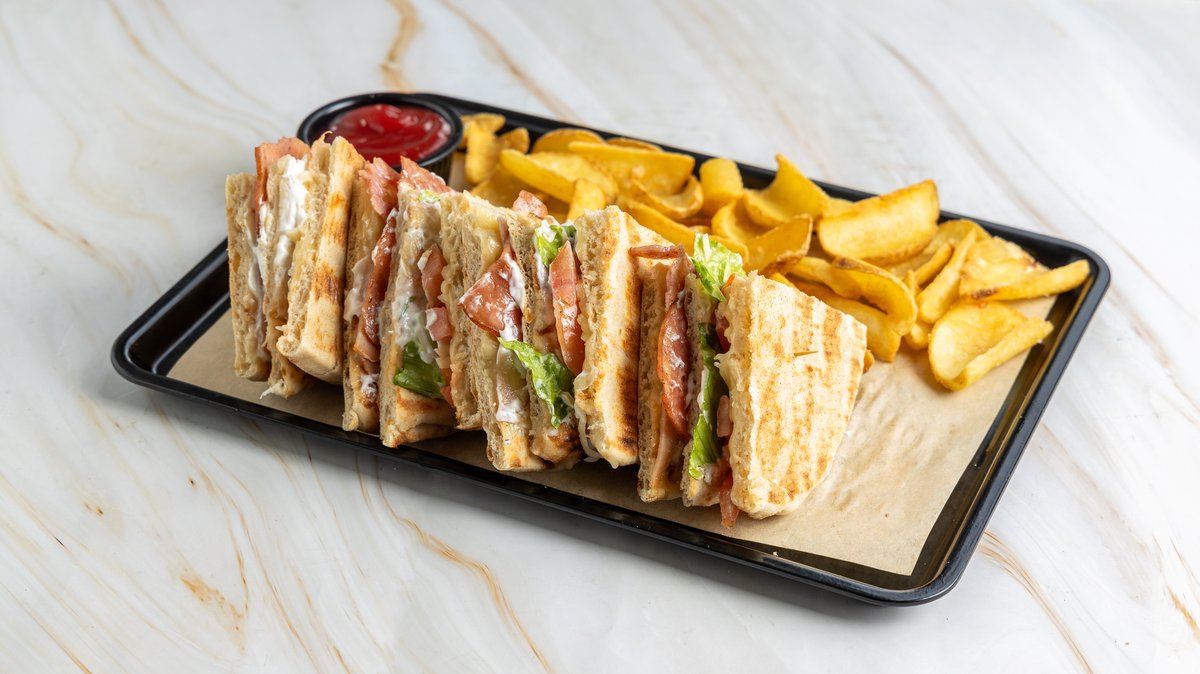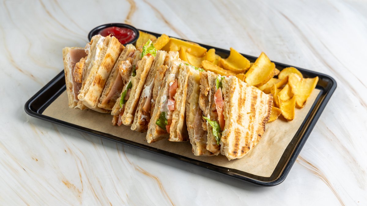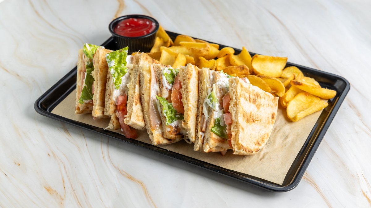 Με ζαμπόν, gouda, ντομάτα, μαρούλι και μαγιονέζα. Συνοδεύεται από πατάτες τηγανητές και dip ketchup